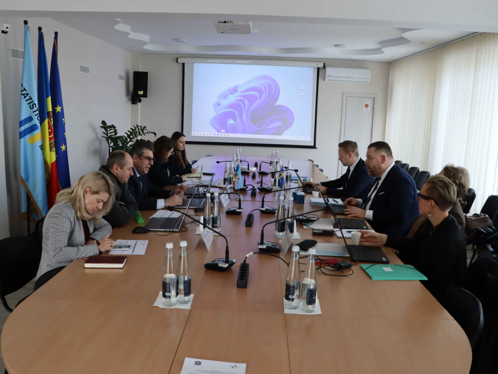 The mission agenda also includes discussions with relevant institutional partners in order to identify cooperation opportunities and strengthen interinstitutional collaboration in the field of official statistics. Participating partner institutions include representatives of the National Bank of Moldova, the Agency for Geodesy, Cartography and Cadastre, the Ministry of Education and Research, and the National Agency for Research and Development.