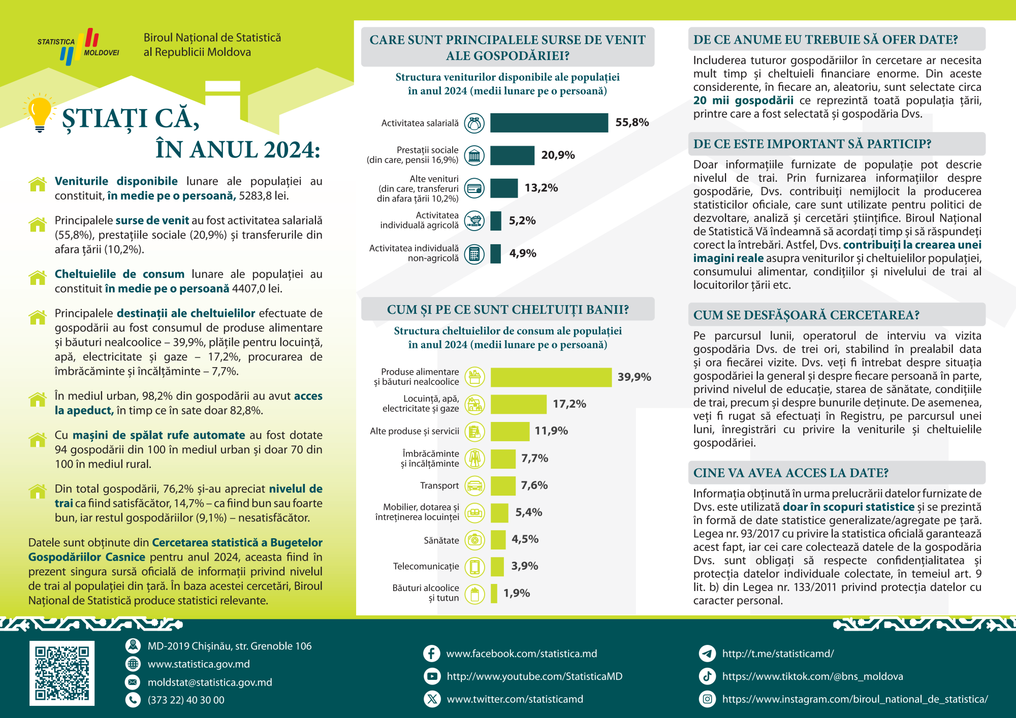 Mai multă informație cu privire la rezultatele cercetării este disponibilă pe pagina oficială www.statistica.gov.md și poate fi accesată gratuit de către orice persoană la rubricile: