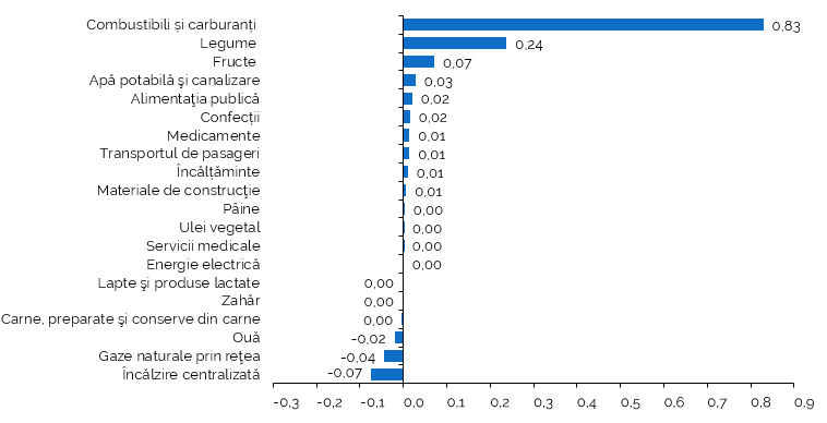 - produsele alimentare cu circa 1,0%, contribuind la majorarea prețurilor medii de consum cu 0,3%.