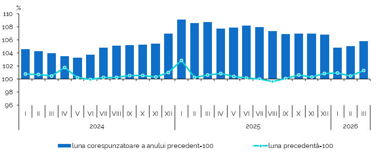 Denumirea indicatorilor | Martie 2026, în % față de: | ||