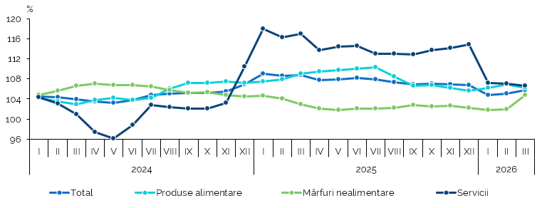 Figura 3. Indicii Prețurilor de Consum în ianuarie 2024 - martie 2026