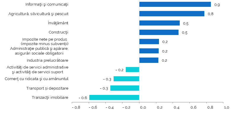 Influență negativă mai accentuată asupra PIB au avut următoarele activități: