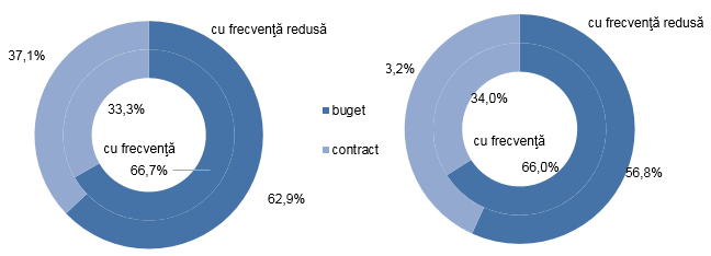 În comparație cu anul 2016 se remarcă creșterea ponderii doctoranzilor înmatriculaţi în bază de contract cu frecvența redusă în numărul total de doctoranzi de la frecvență redusă (cu 6,1 p. p).