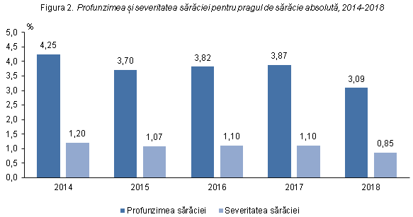 În anul 2018 profunzimea sărăciei a constituit 3,09%, ceea ce înseamnă că pentru depăşirea sărăciei, în condiţiile păstrării sau reducerii nivelului actual de inegalitate, este necesară majorarea consumului populaţiei în medie cu 3,09%. În același timp, severitatea sărăciei a constituit 0,85%. Ambii indicatori sunt în descreștere față de anul care precede anul de referință.