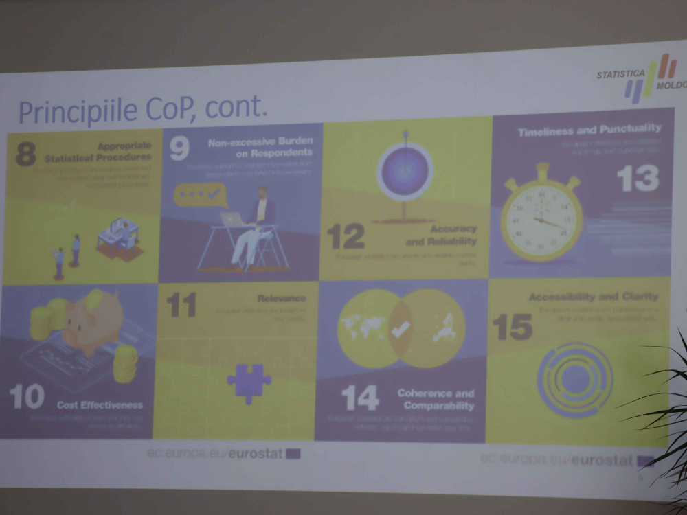 La eveniment au fost abordate subiecte relevante pentru activitățile de elaborare și diseminare a statisticilor oficiale, inclusiv: legislația statistică, sistemul de management al calității, în special confidențialitatea și protecția datelor, cerințe și metode moderne privind diseminarea statisticilor oficiale.
