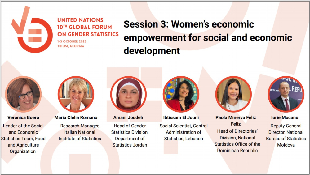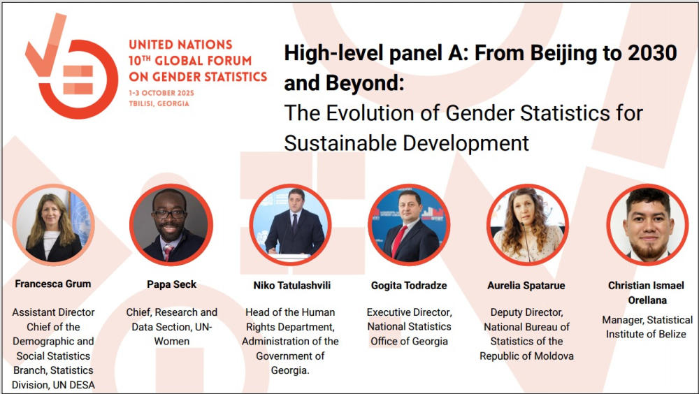 Directorii generali adjuncți ai Biroului Național de Statistică (BNS), au împărtășit experiența Republicii Moldova în domeniul statisticii de gen la cea de-a 10-a ediție a Forumului Global privind statisticile de gen și la cea de-a 19-a reuniune a Grupului inter-agenții și de experți privind statisticile de gen (IAEG-GS) și , care s-au desfășurat în Tbilisi, Georgia, în perioada 30 septembrie, respectiv în perioada 1–3 octombrie curent. Evenimentul a fost organizat de Divizia de Statistică a Departamentului pentru Afaceri Economice și Sociale al Națiunilor Unite (UNSD), în colaborare cu Biroul Național de Statistică al Georgiei.