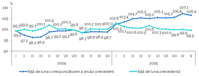 - s-au majorat cu 6,4% comparativ cu luna octombrie 20245.