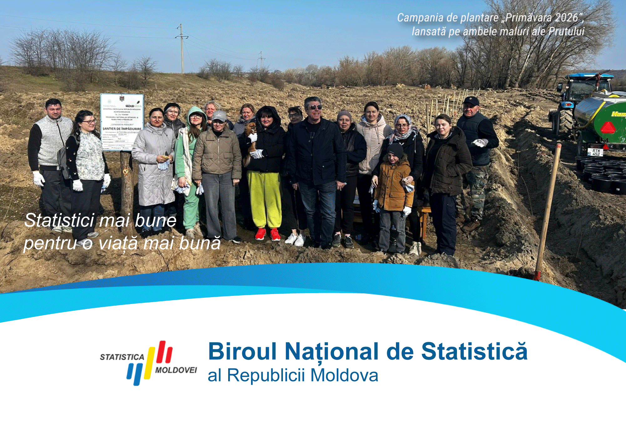 ![]() | 16.03.2026 În contextul implementării Programului național de extindere și reabilitare a pădurilor pentru perioada 2023-2032, colectivul Biroului Național de Statistică (BNS) a participat sâmbătă, 14 martie, la acțiunile de plantare, organizate de Ministerul Mediului și Agenția „Moldsilva”.Echipa de la Oficiul central al BNS și Centrul Regional de Statistică (CRS) Chișinău s-a deplasat la Dubăsarii Vechi, raionul Criuleni, la șantierul de... |
