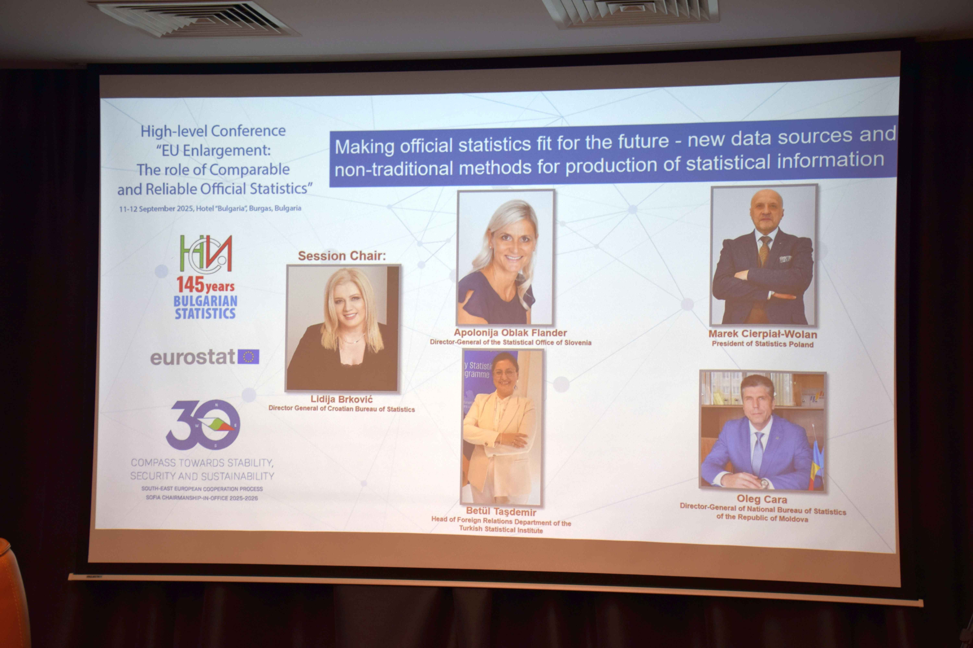 În perioada 11–12 septembrie 2025, reprezentanții Biroului Național de Statistică (BNS) participă la Conferința internațională de nivel înalt „Extinderea UE: Rolul statisticilor oficiale comparabile și credibile”, organizată în Burgas, Bulgaria, de către Institutul Național de Statistică al Bulgariei și Eurostat. Evenimentul marchează, de asemenea, 145 de ani de la înființarea statisticii oficiale în Bulgaria, o istorie de peste un secol în statistică și rolul vital al datelor pentru dezvoltarea țării.